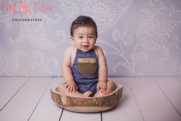 Voici une séance photo bébé dans le Val de Marne. Après une séance nouveau né, la séance vers les 9 mois du bébé est l’âge idéal pour une mini séance en studio. A cet âge là le bébé tient assis, est en général très souriant et c’est un régal de capturer ses mimiques.