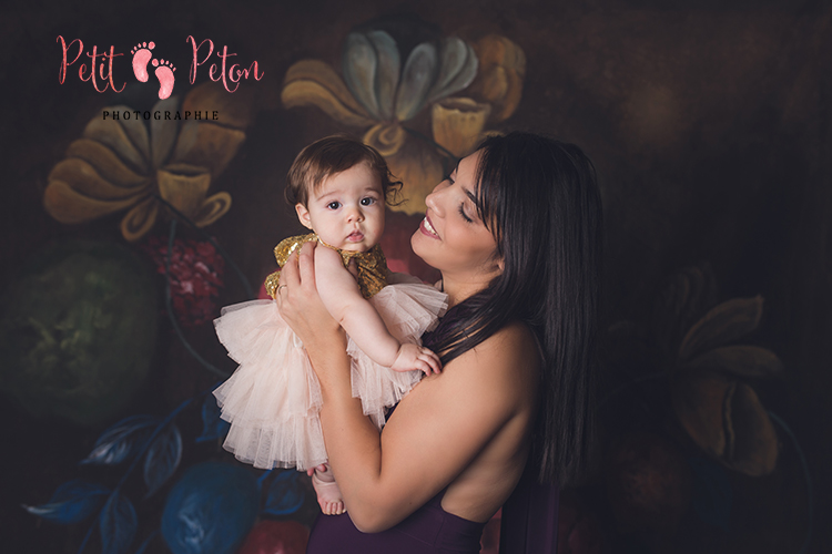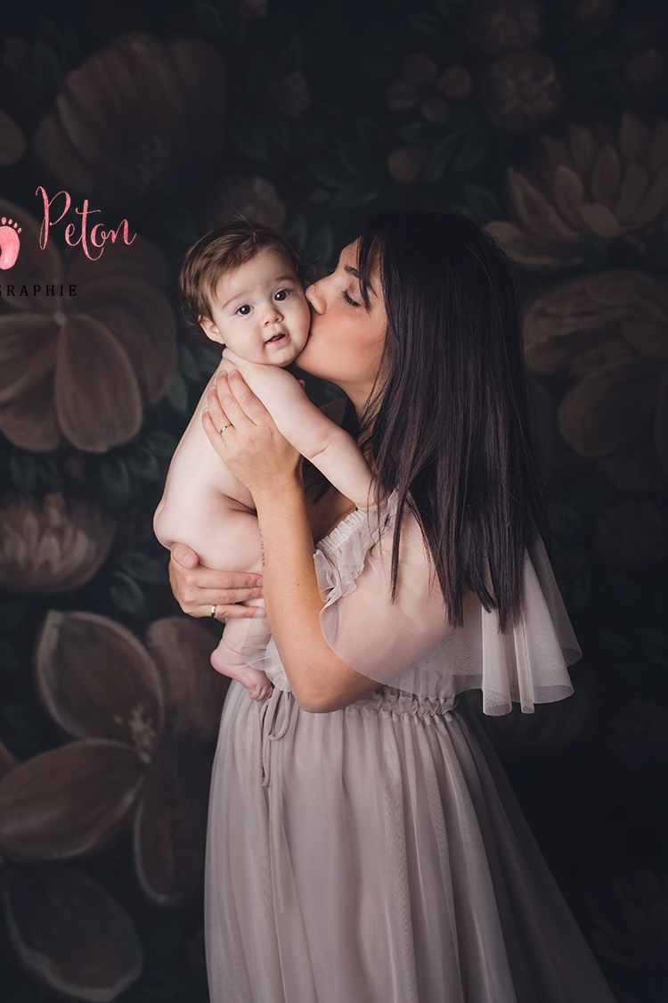 J’avais très envie depuis quelques temps de vous proposer des séances photos maman-bébé. La première année de bébé est une période qui passe à tout vitesse et quand on est maman on a juste envie que ce moment dure. C’est pourquoi j’ai imaginé une séance pleine de tendresse et d’amour entre une maman et son bébé dans un joli décor. Comme les séances en extérieur ne sont pas toujours l’idéal à cause de la météo, il est maintenant possible de réaliser cette séance en studio avec de jolis fonds fleuris. J’ai beaucoup aimé capturer le moment de complicité entre La jolie A. et sa maman.